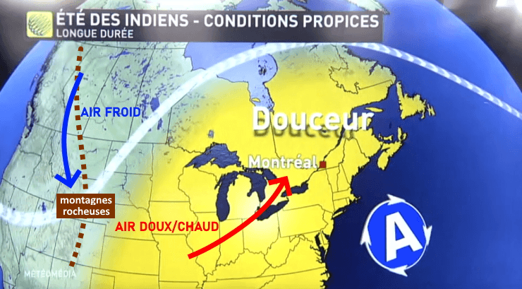 Schéma d'une situation typique d'été indien en Amérique du Nord - via MétéoMédia