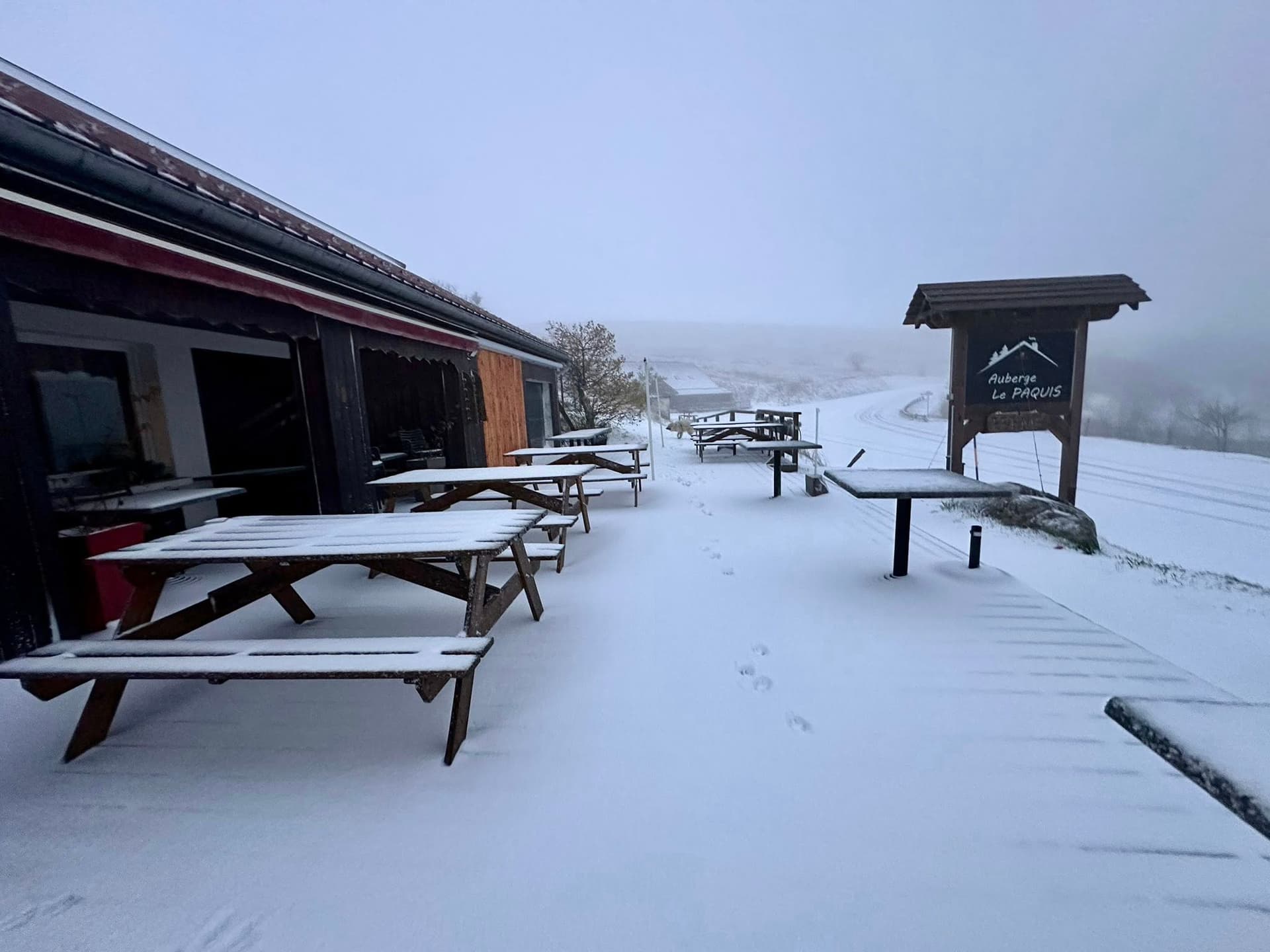 Neige à La Bresse dans les Vosges à 1250m ce matin du vendredi 24 octobre 2025 - photo Auberge Le Paquis