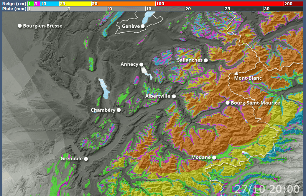 Cumuls de neige du samedi 25 au lundi 27 octobre 2025 sur le nord des Alpes - skipass