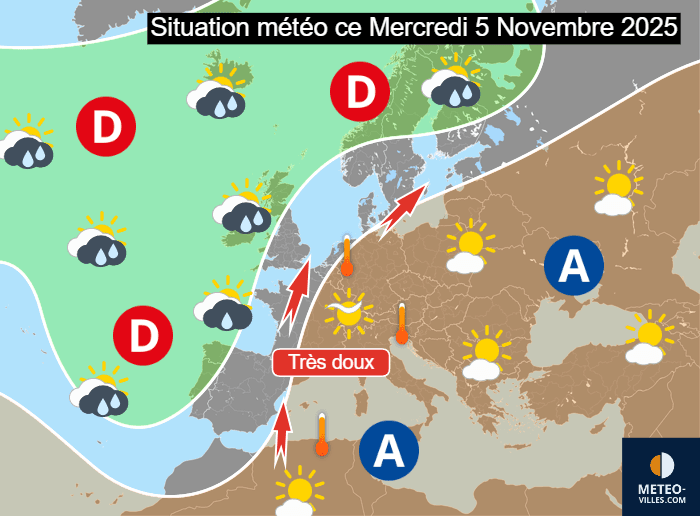 Situation météo en Europe ce mercredi 5 novembre 2025 - Météo Villes